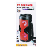 اسپیکر بلوتوث یکی از وسایلی به شمار می رود که به طور گسترده در منزل و محل کار، در مهمانی و یا سفر استفاده می شود. وسیله ای که می تواند لیست آهنگهای مورد علاقه تان را تا ساعتها بخواند و بنوازد. اسپیکر بلوتوثی مدل ZQS-4209 یکی از نمونه های بسیار با کیفیت اسپیکر بلوتوث است که در سه رنگ مشکی، قرمز و آبی طراحی شده است. اسپیکر بلوتوثی مدل ZQS-4209 ظاهری استوانه ای شکل دارد با دسته قابل حمل که جابجایی آن را بسیار راحت کرده است. درون این اسپیکر باتری قابل شارژی به کار رفته است که با استفاده از پورت میکرو یو اس بی با جریان و ولتاژ 5V این اسپیکر شارژ می شود. در قسمت بالایی اسپیکر دکمه های کنترلی وجود دارد که می توانید از آن برای روشن و خاموش کردن اسپیکر، کم و زیاد کردن صدا، روشن و خامش کردن بلوتوث، پخش و یا قطع موسیقی استفاده نمایید. و اما جذابیتی که این اسپیکر دارد، وجود رقص نور به هنگام پخش موسیقی است. یکی از ویژگی های جالب این اسپیکر، داشتن یک کنترل و یک بند در کنار اسپیکر می باشد.